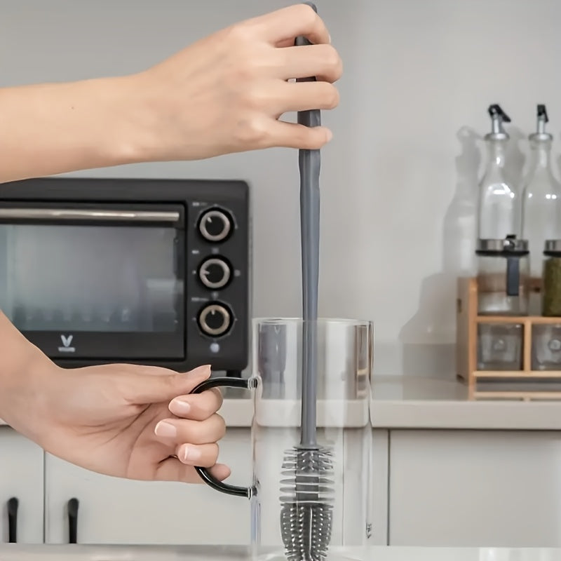 1pc Multi-Functional Long-Handled Rubber Brush for Cups & Bottles - Reusable Ergonomic Scrubber with Durable Bristles, Non-Electric Cleaning Tool for Kitchen, Bathroom, Car - Hygienic Design, Brush for Bottle, Kitchen Scrubbi