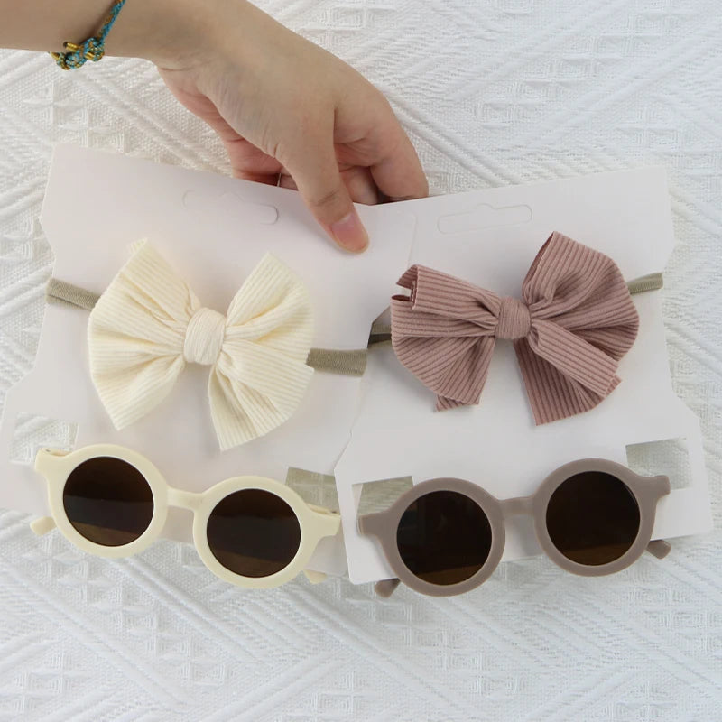 Baby Sunglasses Headband Set 0-5year Kids UV Protection Sun Glasses Nylon Elastic Toddler Bow Hairband Children Hair Accessories