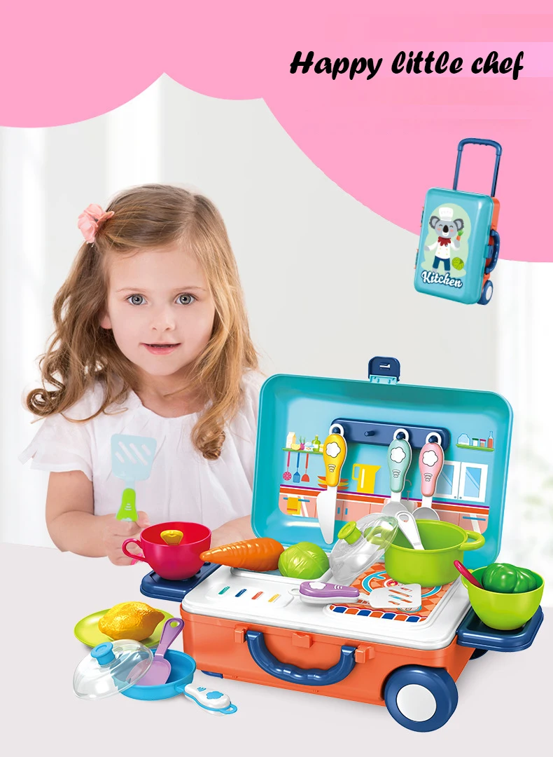 Children's Play House Kitchen Toys Simulation Girls Beauty Portable Tools Kitchen Utensils Tableware Trolley Case Medical Kit