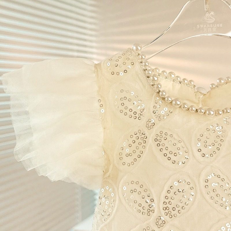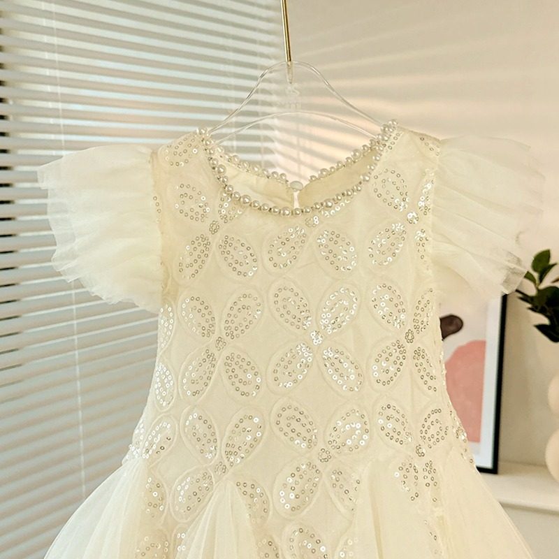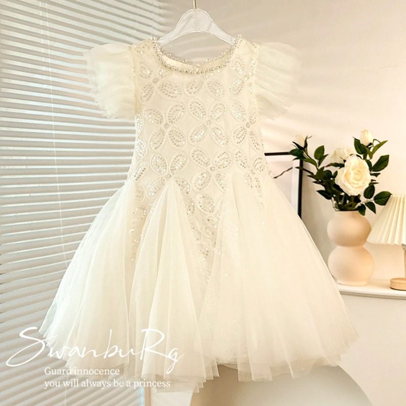 Girls summer dress high end color sequin sleeveless princess dress western style patchwork mesh dress vest skirt