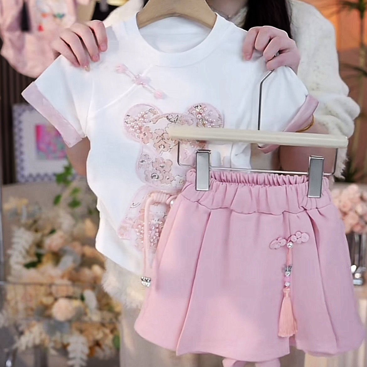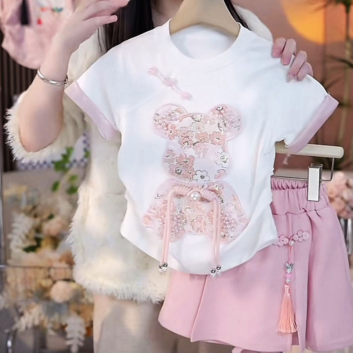 Girls Set Summer New Style Korean Version Baby Dress Cartoon Short sleeved Top Pants Two piece Set Girls Set Summer New Style Korean Version Baby Dress Cartoon Short sleeved Top Pants Two piece Set