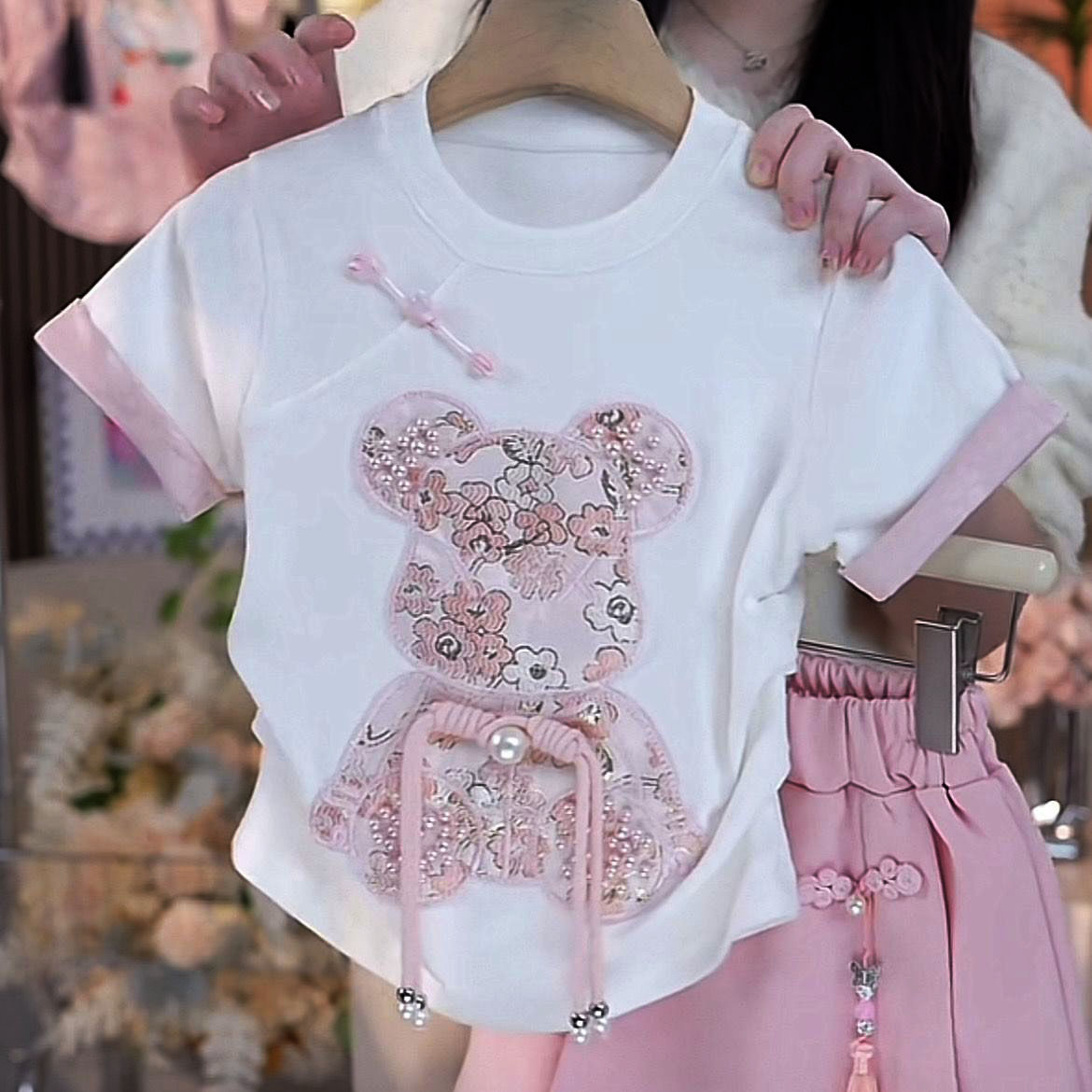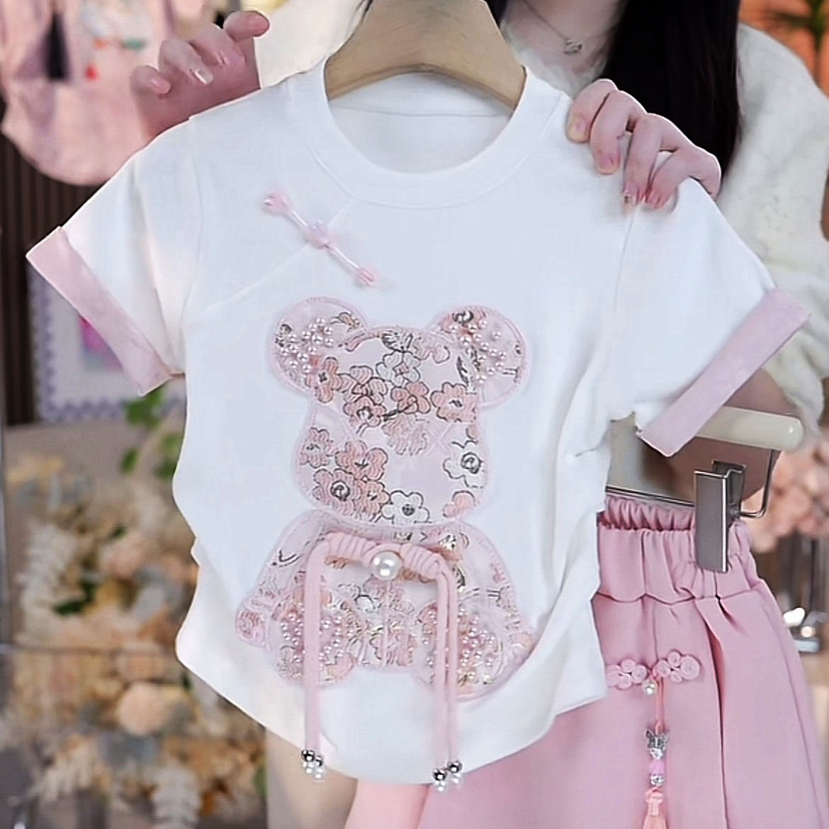 Girls Set Summer 2025 New Style Korean Version Baby Dress Cartoon Short sleeved Top Pants Two piece Set image 3