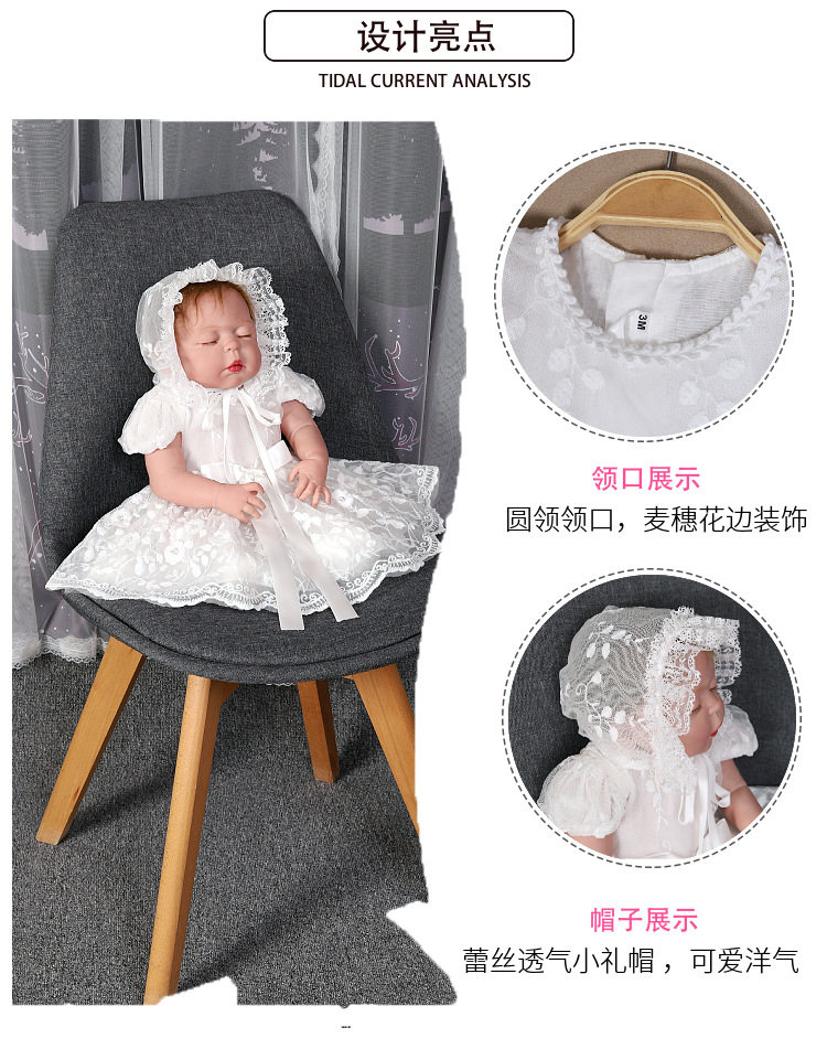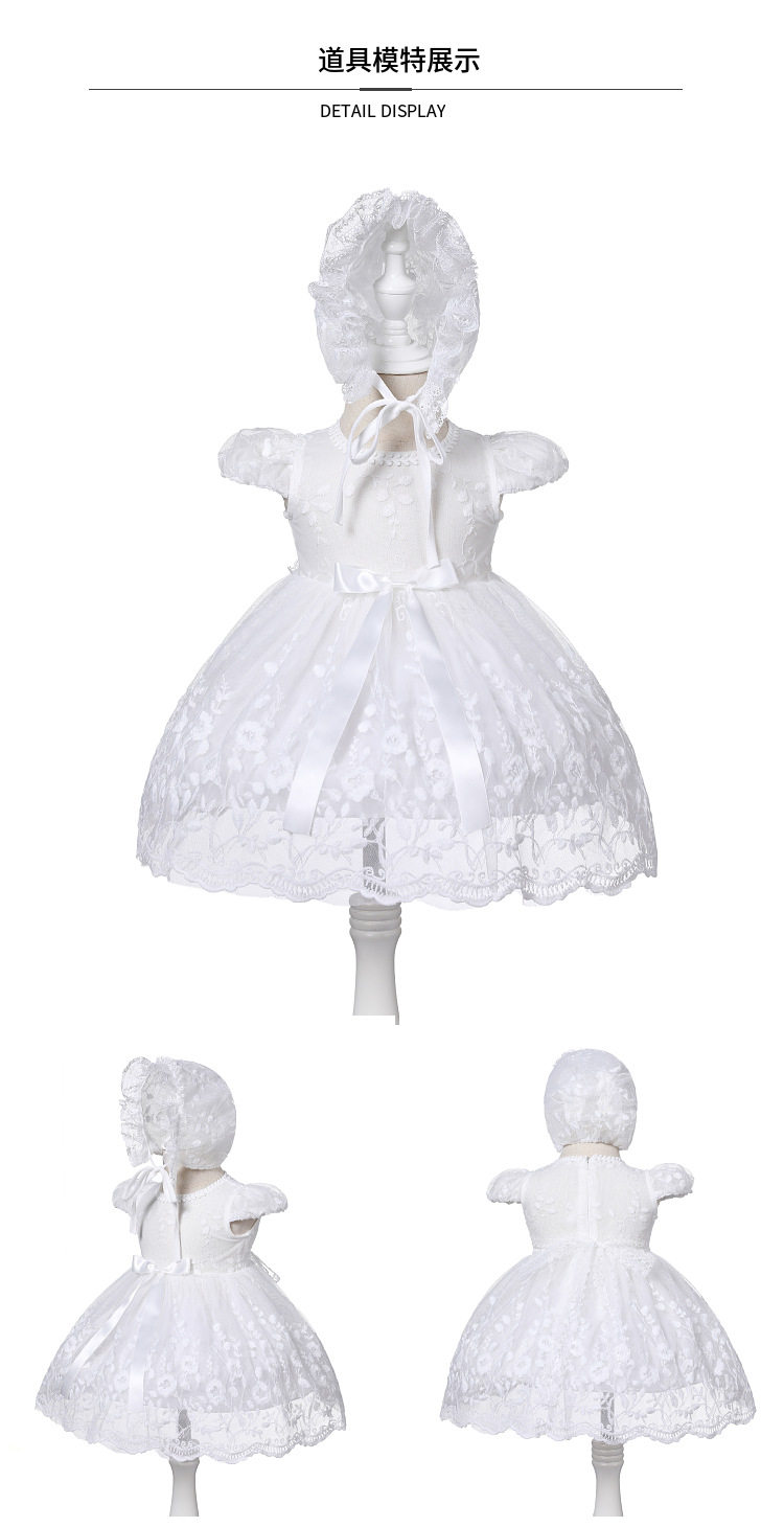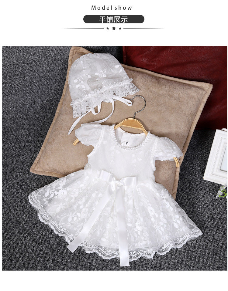 • Summer Baby Elegant Lace Princess Dress Baby Full Moon Dress Girl Baby Puff Dress Hat Dress Children