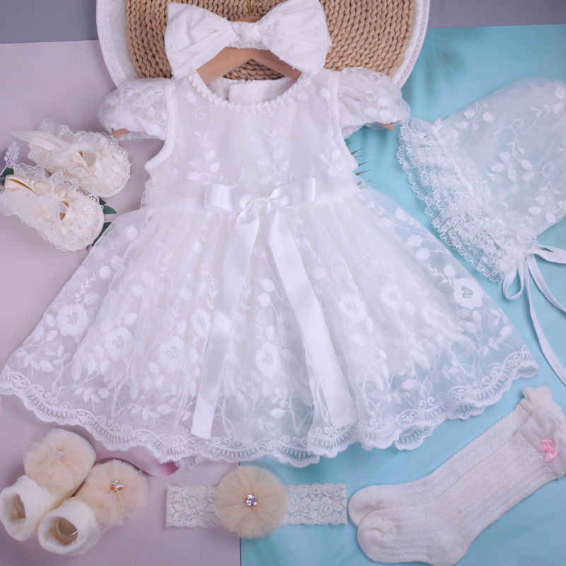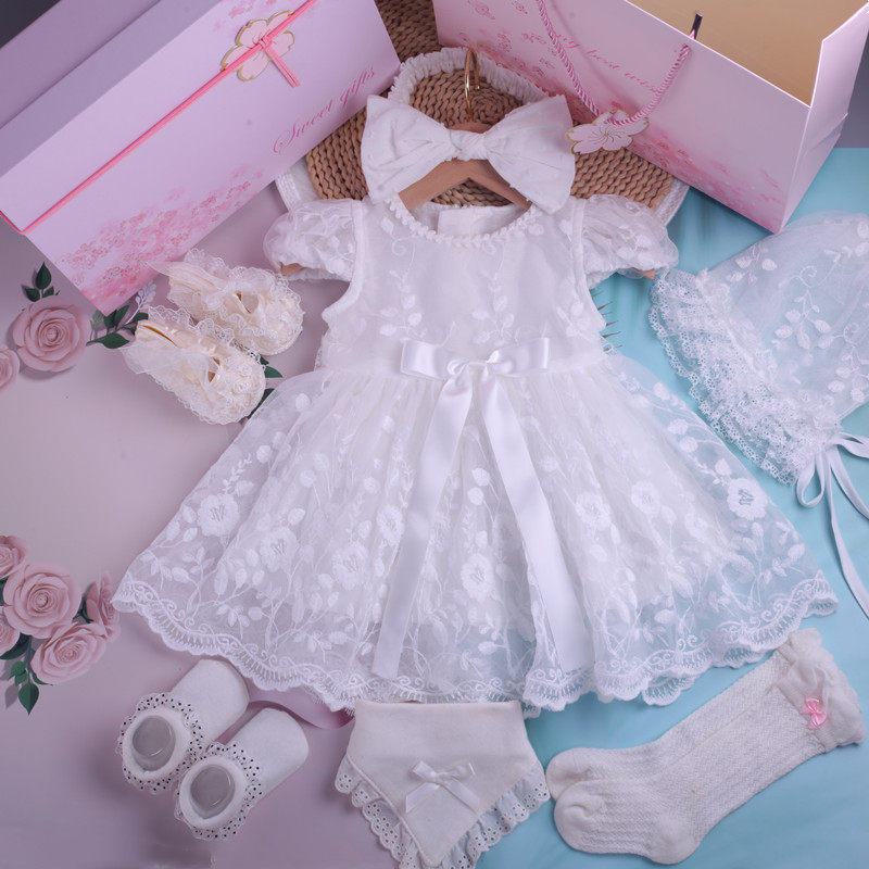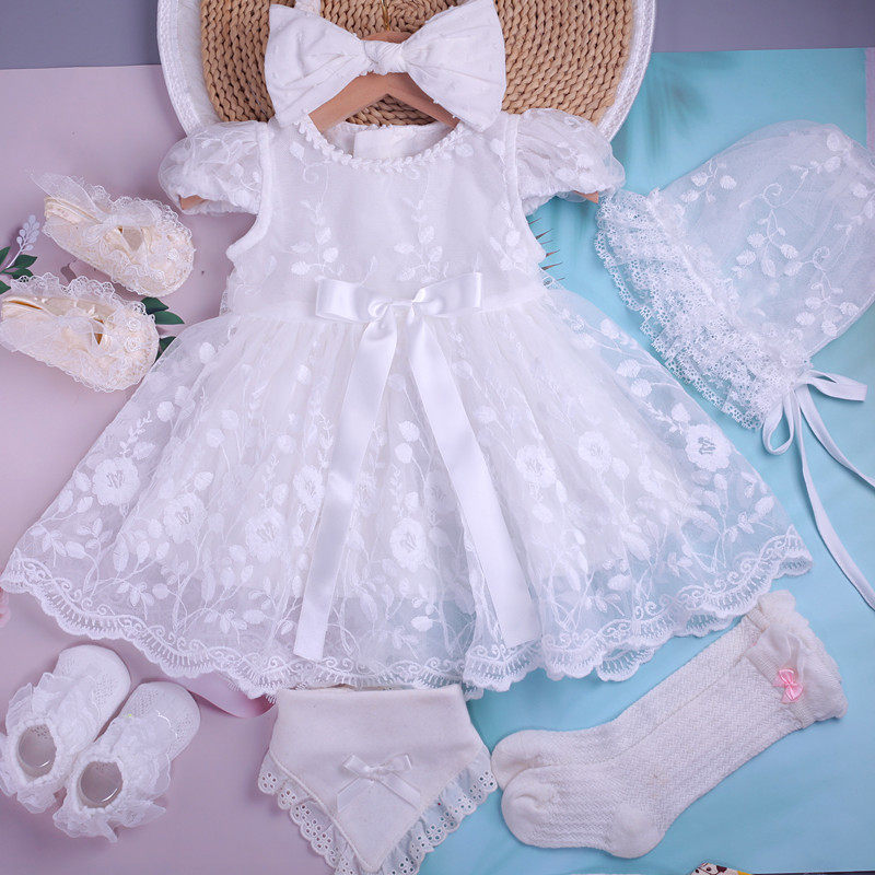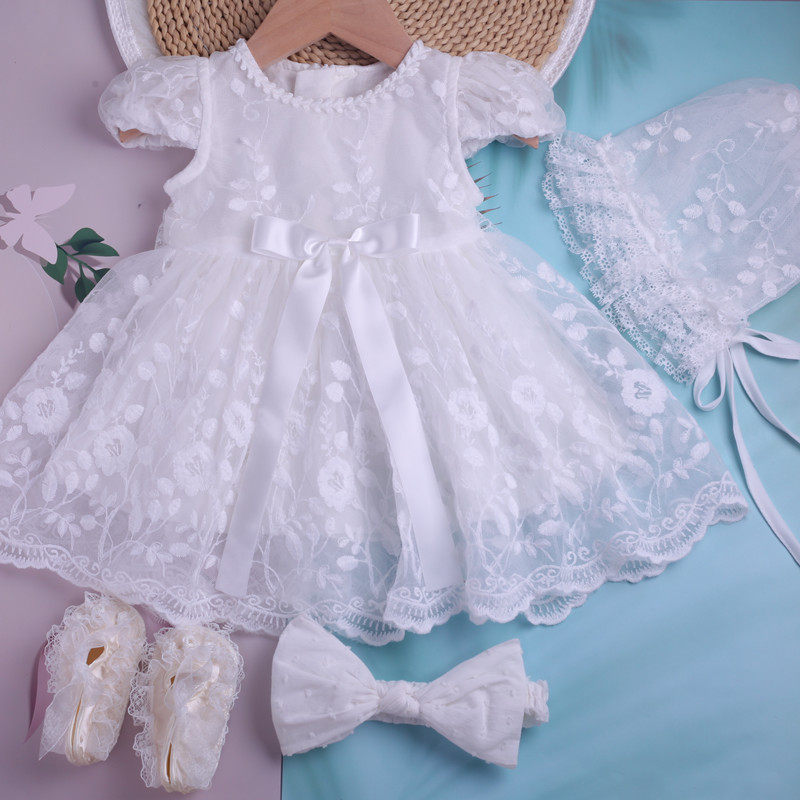 Summer Baby Elegant Lace Princess Dress Baby Full Moon Dress Girl Baby Puff Dress Hat Dress Children